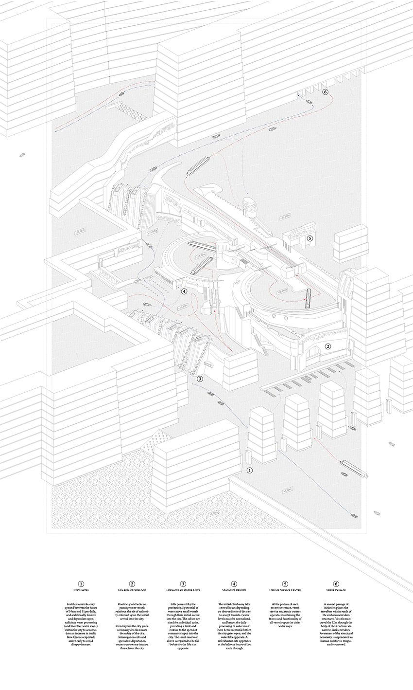 In response to the UK’s imminent water crisis, brought through an increase in population, water usage and the looming realisation of Peak Water, the British Government registers the severity and urgency of the UK’s water needs, and in response to resist drought, scarcity and starvation by 2025, it has proposed that a system of infrastructural devices are required to maintain hydrological self-sufficiency within the UK.