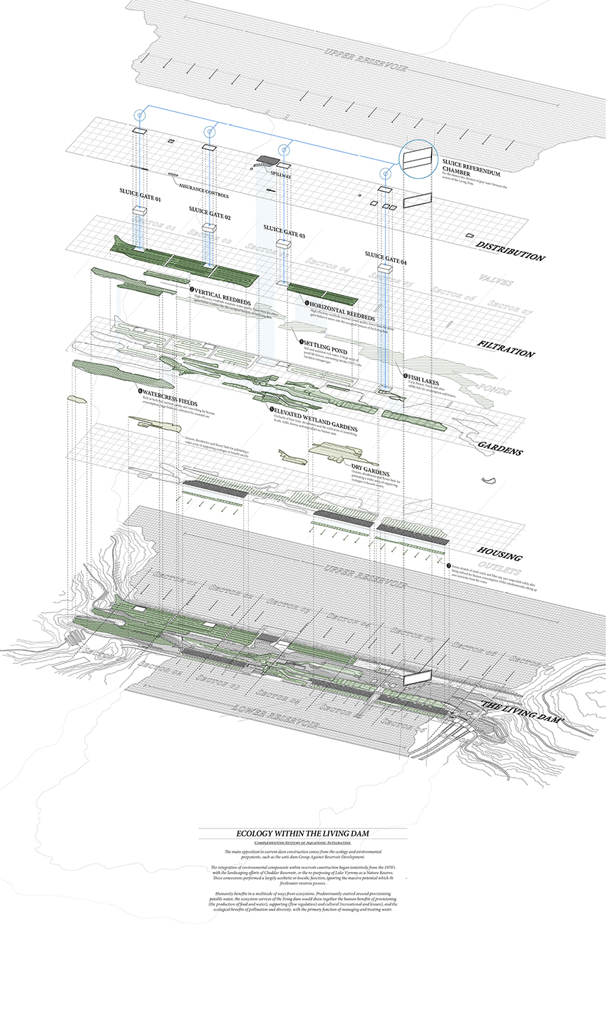For these reasons, my proposal of 'The Living Dam' is towards a new typology of dam - away from the image of solitary hydrological infrastructures, and towards a model which is not only integral but also integrated with society, which may help alter the public perception of the essential infrastructures and reduce many of the negative consequences associated with dam management.