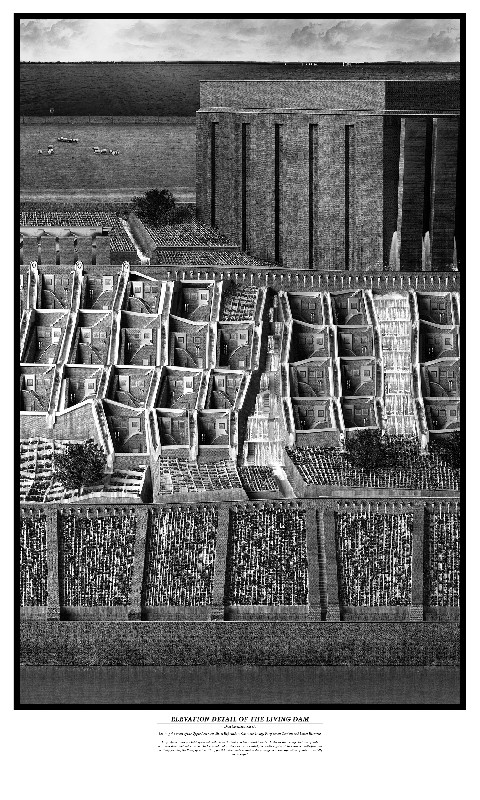 Together, with the integration of ecology, society and infrastructure, the Living Dam is a physical model of a modern 'hydraulic civilisation'; a community and society sustained and dependant on its control, management and utilisation of water.